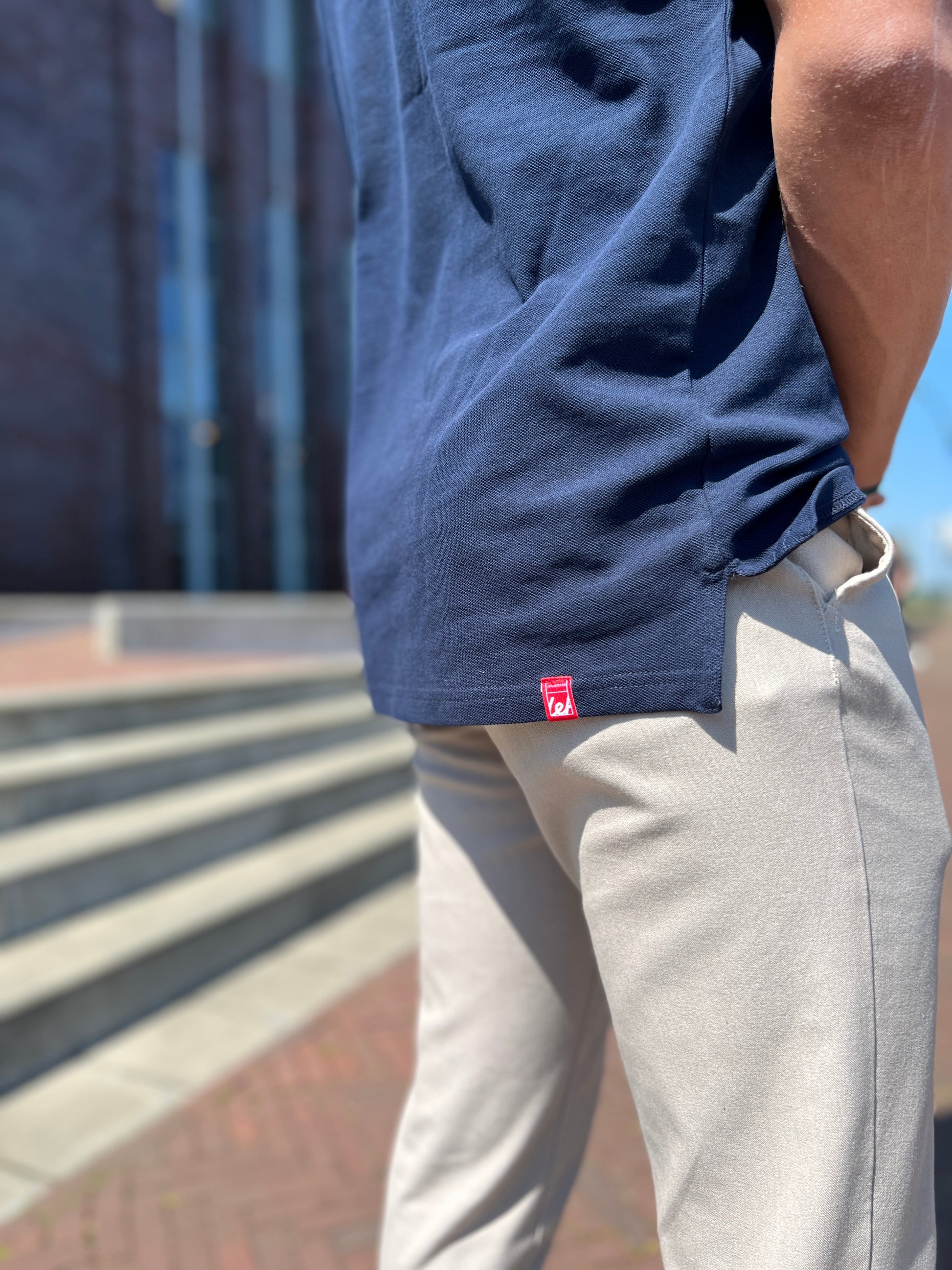 De slim fit snit omhelst je lichaam op een stijlvolle manier, terwijl slimme designkeuzes de Eden Navy polo uniek maken. Met een achterzijde die iets langer is dan de voorzijde, biedt deze polo een eigentijdse look en extra bewegingsvrijheid.